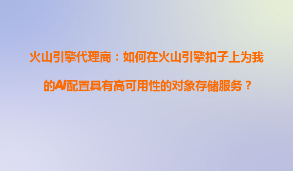 2025-10-26火山引擎代理商:如何在火山引擎扣子上為AI配置高可用對象存儲服務 一、火山引擎對象存儲的核心優勢 作為火山引擎代理商,首先要充分理解其對象存儲服務(如TOS)的差異化...