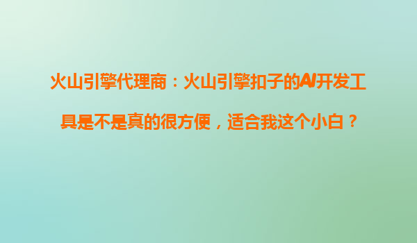 2025-10-26火山引擎代理商:火山引擎扣子的AI開發工具真的很方便,適合小白嗎? 作為火山引擎的代理商,我們經常被問到“火山引擎扣子的AI開發工具是否真的適合沒有編程基礎的小白用戶?”“它的學習曲線平緩嗎?”今天...