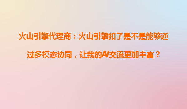 2025-10-26火山引擎扣子:多模態協同如何賦能AI交流的豐富性? 一、多模態協同:AI交流的下一站 在AI技術的快速發展中,單一的文本交互已無法滿足用戶對沉浸式體驗的需求...