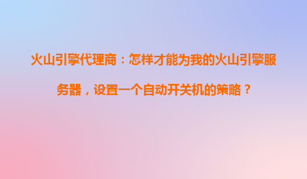 2025-10-23火山引擎代理商:如何為服務器配置自動開關機策略? 一、火山引擎的智能化運維優勢 作為字節跳動旗下的云服務平臺,火山引擎提供高性能彈性計算資源與智能化運維工具。其核心優勢包括: 秒級...