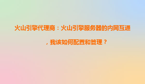 2025-10-23火山引擎代理商:火山引擎服務器的內網互通配置與管理指南 一、火山引擎內網互通的核心優勢 作為字節跳動旗下的云計算服務平臺,火山引擎提供高性能、低延遲的內網互通服務,其核心優勢包括: ...