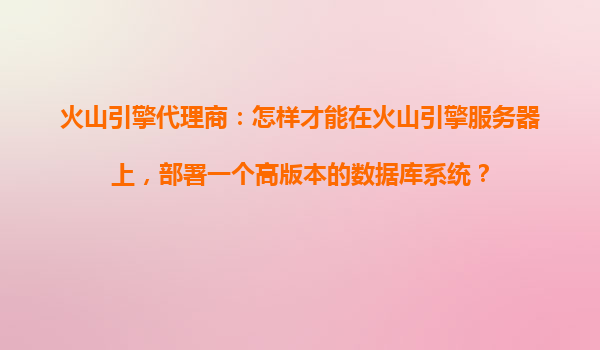 2025-10-23火山引擎代理商:如何在火山引擎服務器上部署高版本數據庫系統 一、火山引擎與代理商的核心優勢 火山引擎作為字節跳動旗下的云計算服務平臺,提供高性能云服務器、彈性存儲及完善的PaaS服務組合。其代理商...