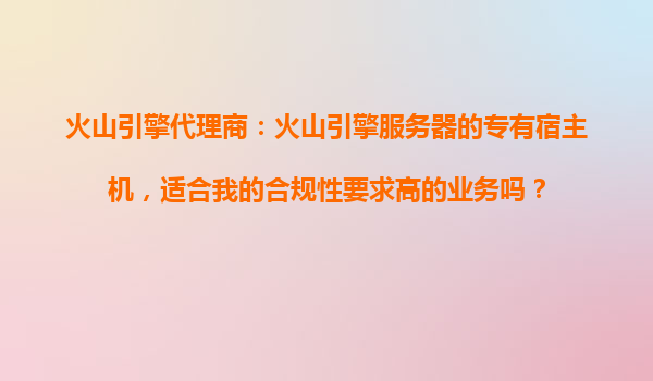 2025-10-21火山引擎代理商解答:專有宿主機如何滿足高合規性業務需求? 一、為什么高合規業務需要專有宿主機? 在金融、醫療、政務等強監管領域,業務系統往往面臨嚴苛的合規要求:數據隔離性、資源...
