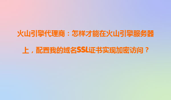 2025-10-19火山引擎代理商指南:如何在火山引擎服務器上配置域名SSL證書實現HTTPS加密訪問 前言 隨著互聯網安全意識的提升,HTTPS加密訪問已成為網站標配。作為火山引擎代理商,幫助客戶在火山引擎服務器上快速部署SS...