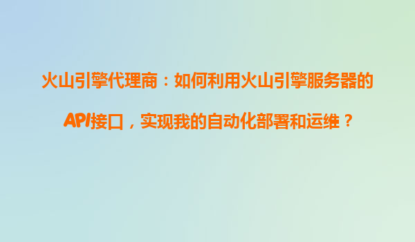 2025-10-20火山引擎代理商:如何利用火山引擎服務器的API接口,實現自動化部署和運維 一、火山引擎的優勢 在數字化轉型的大背景下,云計算和自動化運維已成為企業提升效率、降低成本的重要手段。作為字...