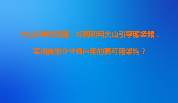 2025-10-19火山引擎代理商:如何利用火山引擎服務器,實現企業級應用的高可用架構? 引言 在數字化轉型的時代背景下,企業級應用的高可用性(HighAvailability,HA)已成為業務連續性和用戶體...