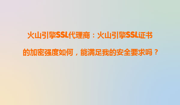 2025-10-16火山引擎SSL代理商:火山引擎SSL證書的加密強度如何,能滿足我的安全要求嗎? 引言:SSL證書的重要性 在當今數字化時代,網絡安全已成為企業和個人不可忽視的重要議題。SSL證書作為保障...