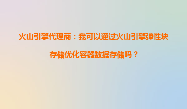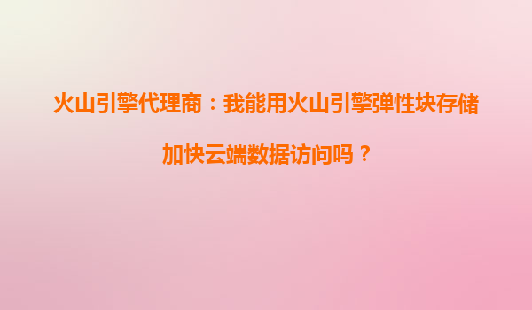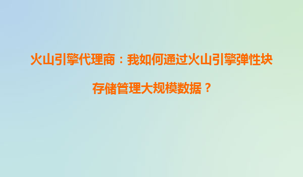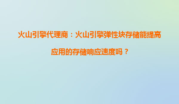 2025-10-15火山引擎代理商:火山引擎彈性塊存儲能提高應用的存儲響應速度嗎? 引言 在數字化時代,企業對存儲性能的要求越來越高,尤其是對存儲響應速度的追求。作為火山引擎的代理商,我們經常被客戶詢問:火山引擎彈...