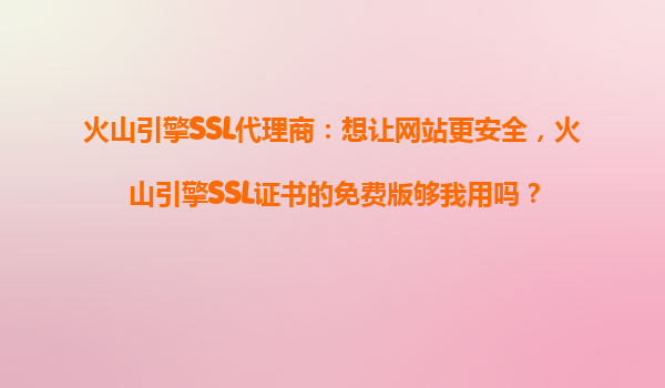 2025-10-15火山引擎SSL代理商:想讓網站更安全,火山引擎SSL證書的免費版夠我用嗎? 一、SSL證書的基礎作用與重要性 SSL證書作為互聯網安全的基石,能夠為網站提供數據傳輸加密、身份驗證和信任保障。無論是電商平臺、...