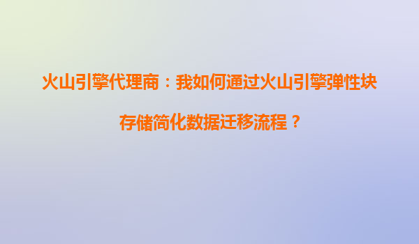 2025-10-14火山引擎代理商:我如何通過火山引擎彈性塊存儲簡化數據遷移流程? 一、火山引擎彈性塊存儲的核心優勢 作為火山引擎代理商,我們深刻理解企業在數據遷移過程中面臨的挑戰:數據量大、遷移周期長、業務中斷...