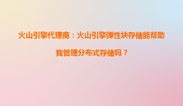 2025-10-15火山引擎代理商:火山引擎彈性塊存儲如何助力企業高效管理分布式存儲? 一、分布式存儲的挑戰與火山引擎的解決方案 隨著企業數字化轉型加速,分布式存儲需求激增,但傳統方案往往面臨擴展性不足、管理復雜...