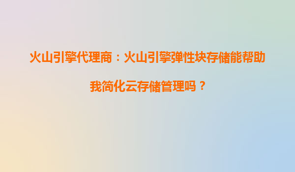 2025-10-14火山引擎代理商:火山引擎彈性塊存儲能幫助我簡化云存儲管理嗎? 一、火山引擎彈性塊存儲的核心優勢 火山引擎彈性塊存儲(EBS)作為其云基礎設施的核心組件,專...