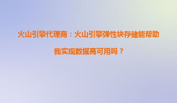 2025-10-13火山引擎代理商:火山引擎彈性塊存儲能幫助我實現數據高可用嗎? 在數字化轉型的浪潮中,數據已成為企業最核心的資產之一。如何確保數據的高可用性、安全性和可擴展性,成為企業IT架構設計的關鍵課題。火山引擎...