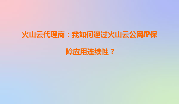 2025-10-06火山云代理商:我如何通過火山云公網IP保障應用連續性? 引言 在當今數字化時代,應用的連續性和穩定性是企業成功的關鍵。無論是電商平臺、在線教育還是企業級應用,任何中斷都可能導致巨大的經濟損失和用...