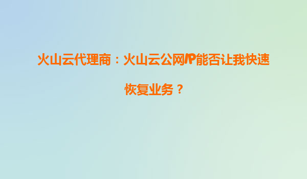 2025-10-05火山云代理商:火山云公網IP能否讓我快速恢復業務? 一、火山云公網IP的核心價值 火山引擎作為字節跳動旗下的云計算服務品牌,其公網IP服務在業務連續性保障中扮演著關鍵角色。公網IP不僅是企業對...