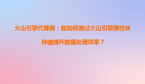 2025-10-09火山引擎代理商:我如何通過火山引擎彈性塊存儲提升數據處理效率? 一、火山引擎彈性塊存儲的核心優勢 作為火山引擎的代理商,我們深刻體會到其彈性塊存儲(EBS)在數據處理效率上的顯著優勢。火...