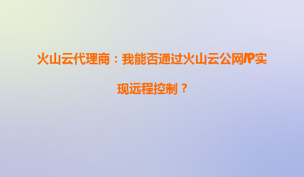 2025-10-06火山云代理商:通過火山云公網IP實現遠程控制的可行性及優勢解析 一、火山云公網IP的遠程控制能力 作為火山云代理商,許多用戶關心的核心問題之一是:能否通過火山云的公網IP實現遠程控...