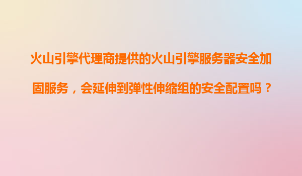 2025-11-17火山引擎代理商提供的服務器安全加固服務是否覆蓋彈性伸縮組? 一、火山引擎服務器安全加固服務的核心特性 火山引擎作為字節(jié)跳動旗下的云服務平臺,其代理商提供的安全加固服務涵蓋操作系統(tǒng)漏洞修復、入...