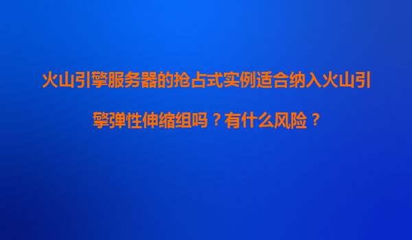 2025-11-16火山引擎搶占式實例與彈性伸縮組的結合優(yōu)勢 火山引擎的搶占式實例是一種高性價比的計算資源,其價格相比按量付費實例顯著降低,適合對成本敏感且容錯性高的業(yè)務場景。通過將其納入彈性伸縮組(AutoScalingGroup)...