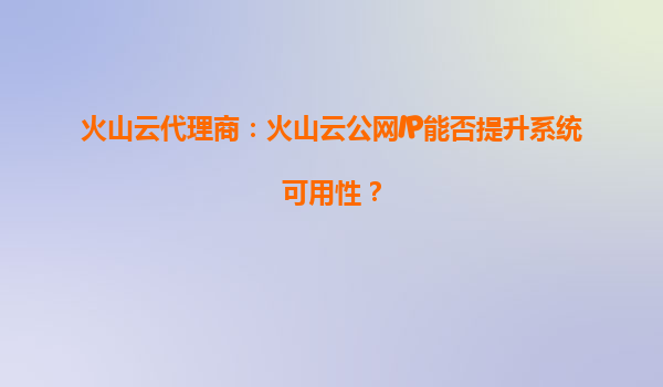 2025-10-04火山云代理商:火山云公網IP如何提升系統可用性? 一、系統可用性的核心挑戰 在數字化時代,企業系統的穩定性和高可用性直接影響業務連續性。常見的挑戰包括: ...