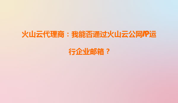 2025-10-04火山云代理商:通過火山云公網IP運行企業郵箱的可行性及優勢解析 一、火山云公網IP支持企業郵箱部署 作為火山云代理商,我們明確答復:火山云的公網IP完全支持運行企業郵箱服務。無論是...