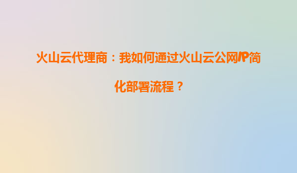2025-10-04火山云代理商:我如何通過火山云公網IP簡化部署流程? 一、火山引擎的核心優勢 火山引擎作為字節跳動旗下的云計算服務平臺,憑借其強大的基礎設施和全球化覆蓋能力,為企業提供了高性能、高可用的...