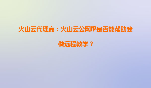 2025-10-04火山云代理商:火山云公網IP是否能幫助我做遠程教學? 一、火山云公網IP的核心優勢 火山引擎作為字節跳動旗下的云計算服務平臺,其公網IP服務具備高性能、低延遲、高穩定性等特點,尤其適合對網絡...