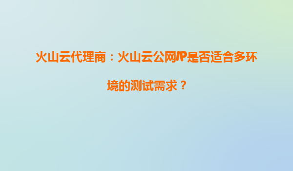 2025-10-04火山云公網IP:多環境測試的理想選擇 在數字化轉型的浪潮中,企業對于高效、穩定的多環境測試需求日益增長。火山云作為火山引擎旗下的云計算服務品牌,其公網IP產品憑借靈活部署、高性能網絡和全球化覆蓋等優勢...
