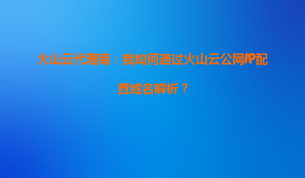 2025-10-04火山云代理商指南:如何通過火山云公網IP配置域名解析 一、火山引擎的核心優勢 在開始配置域名解析前,先了解火山云(火山引擎)的獨特優勢,能幫助您更高效地使用其服務: 1.高性能全球網絡 火...