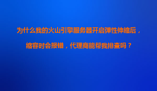 2025-11-16為什么我的火山引擎服務(wù)器開啟彈性伸縮后,縮容時會報錯?代理商能幫我排查嗎? 一、彈性伸縮常見縮容報錯原因 在火山引擎開啟彈性伸縮(AutoScaling)功能后,縮容過程中可能遇到多種報...