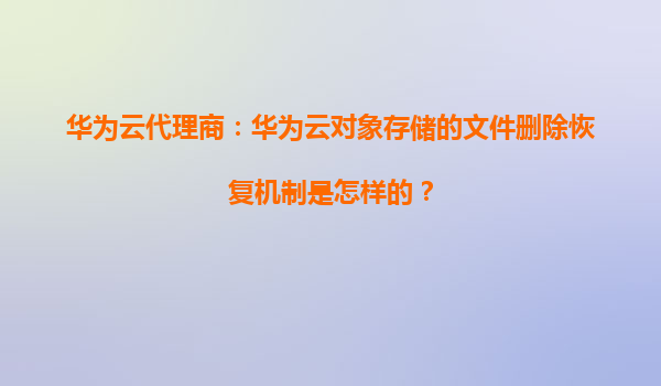 2026-01-08華為云代理商:華為云對象存儲的文件刪除恢復機制詳解 一、引言 在數字化轉型的浪潮中,數據存儲的安全性成為企業關注的核心問題之一。華為云對象存儲服務(OBS...