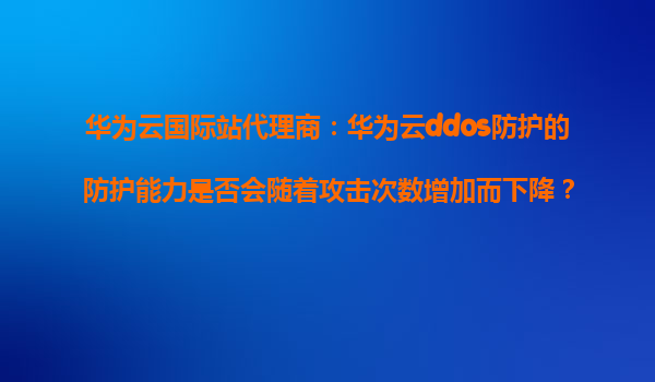 2026-01-08華為云國際站代理商解析:華為云DDoS防護的防護能力是否會隨著攻擊次數增加而下降? 引言 在當今數字化時代,網絡安全問題日益嚴峻,分布式拒絕服務攻擊(DDoS)成為企業面臨的重大威脅之一。華為云作為全...