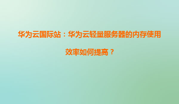 2026-01-08華為云國際站:華為云輕量服務器的內存使用效率優化指南 一、華為云輕量服務器簡介 華為云輕量服務器(HuaweiCloudLightweightServer)是面向中小企業及開發者推出的高性價比云計算產...