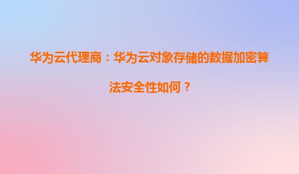 2026-01-08華為云代理商:華為云對象存儲的數據加密算法安全性解析 在數字化時代,數據安全已成為企業核心競爭力的重要組成部分。華為云作為全球領先的云服務提供商,其對象存儲(OBS)服務憑借強大的數據加密能力,為用...