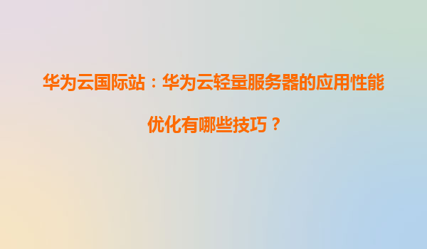 2026-01-08華為云國際站:華為云輕量服務器的應用性能優化技巧 引言 在當今數字化時代,云計算已成為企業IT基礎設施的重要組成部分。華為云作為全球領先的云服務提供商之一,其輕量服務器(Lighthou...