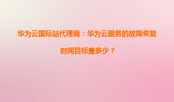 2026-01-08華為云國際站代理商:華為云服務的故障恢復時間目標是多少? 隨著企業數字化轉型的加速,云服務的穩定性和可靠性成為用戶選擇云服務提供商的重要考量因素。華為云作為全球領先的云服務提供商之一,其...