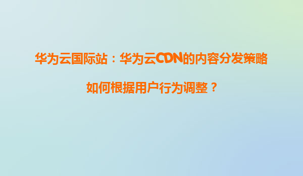 2026-01-08華為云國際站:華為云CDN的內容分發策略如何根據用戶行為調整? 一、華為云CDN的核心優勢 華為云CDN(內容分發網絡)憑借全球化節點布局、智能調度算法和強大的安全防護...