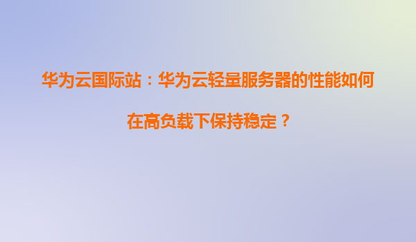 2026-01-08華為云國際站:華為云輕量服務器的性能如何在高負載下保持穩定? 引言 在當今數字化時代,企業對云計算的需求日益增長,尤其是在高負載場景下,服務器的穩定性和性能至關重要。華為云輕量服務器以其卓越的...