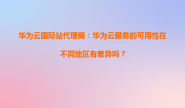2026-01-08華為云國際站代理商:華為云服務的可用性在不同地區有差異嗎? 隨著全球數字化轉型的加速,云計算服務已成為企業IT基礎設施的核心組成部分。華為云作為全球領先的云服務提供商,憑借其強大的技術實力和全球化布...