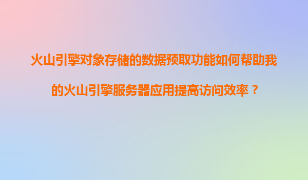 2025-11-21火山引擎對象存儲(chǔ)的數(shù)據(jù)預(yù)取功能如何提升服務(wù)器應(yīng)用訪問效率 一、數(shù)據(jù)預(yù)取功能的核心價(jià)值 火山引擎對象存儲(chǔ)(TOS)的數(shù)據(jù)預(yù)取功能通過主動(dòng)將冷數(shù)據(jù)加載至高速緩存層,有效減少用戶訪問時(shí)的延遲。當(dāng)服務(wù)器應(yīng)...
