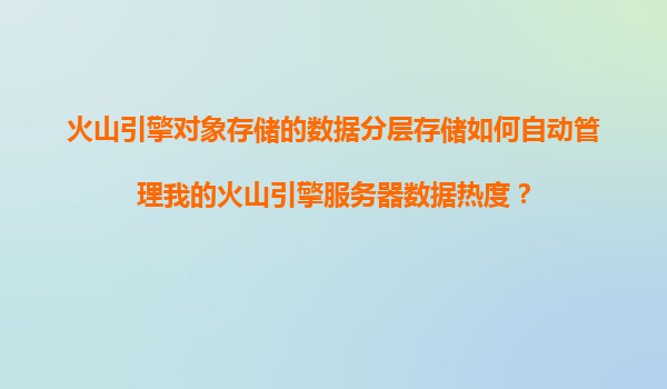 2025-11-21火山引擎對象存儲(chǔ)的數(shù)據(jù)分層存儲(chǔ)如何自動(dòng)管理數(shù)據(jù)熱度? 引言 在數(shù)字化時(shí)代,數(shù)據(jù)已經(jīng)成為企業(yè)的核心資產(chǎn)之一。隨著數(shù)據(jù)量的不斷增長,如何高效、經(jīng)濟(jì)地存儲(chǔ)和管理數(shù)據(jù)成為企業(yè)面臨的重要挑戰(zhàn)。火山引擎對...