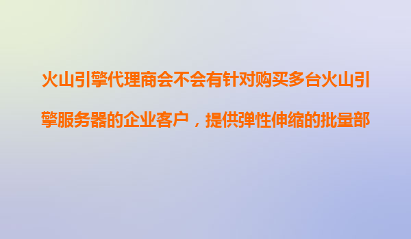 2025-11-17火山引擎代理商如何助力企業(yè)客戶實(shí)現(xiàn)彈性伸縮與批量部署 一、火山引擎的核心優(yōu)勢 火山引擎作為字節(jié)跳動旗下的云計算服務(wù)平臺,以高性能計算、彈性資源和智能調(diào)度為核心,為企業(yè)提供以下關(guān)鍵能...