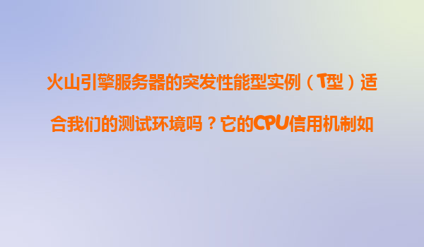 2025-11-08火山引擎突發性能型實例(T型)在測試環境中的適用性及CPU信用機制解析 一、突發性能型實例(T型)簡介 突發性能型實例(T型)是火山引擎(VolcanoEngine)推出的一種經濟高效的云服務器類型,特別適合對...