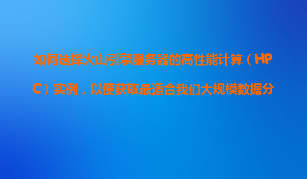 2025-11-08如何選擇火山引擎服務器的高性能計算(HPC)實例,以便獲取最適合我們大規模數據分析的算力支持? 引言 在當今的數字化時代,大規模數據分析已成為企業決策和業務發展的關鍵驅動力。為了高效處理海量數據,...