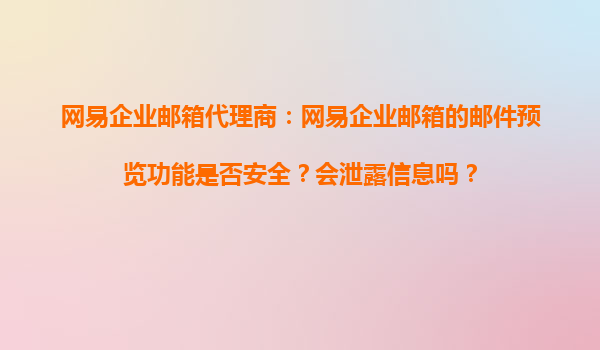 2025-11-03網易企業郵箱代理商:網易企業郵箱的郵件預覽功能是否安全?會泄露信息嗎? 引言 在當今數字化時代,企業郵箱的安全性成為企業信息化管理的重中之重。網易企業郵箱作為國內領先的企業郵箱服務提供商,以其穩定性、...