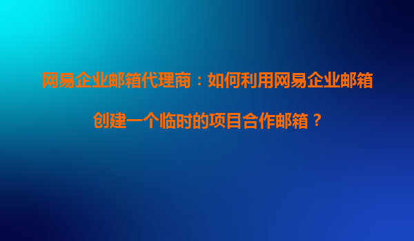 網易企業郵箱代理商:如何利用網易企業郵箱創建一個臨時的項目合作郵箱? 引言 在企業項目管理中,臨時項目合作郵箱是一種高效、安全的溝通方式,尤其適用于跨部門或跨企業的協作場景。網易企業郵箱作為國內領...