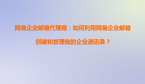 2025-11-02網易企業郵箱代理商:如何高效創建與管理企業通訊錄 一、網易企業郵箱的核心優勢 作為國內領先的企業郵箱服務商,網易企業郵箱憑借以下優勢成為眾多企業的首選...
