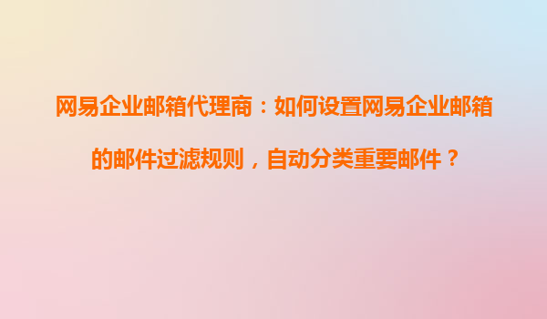 2025-11-02網易企業郵箱代理商:如何設置網易企業郵箱的郵件過濾規則,自動分類重要郵件? 一、網易企業郵箱的優勢 網易企業郵箱憑借其穩定、高效、安全的特點,成為眾多企業的首選。其核心優勢包括: 高安全...