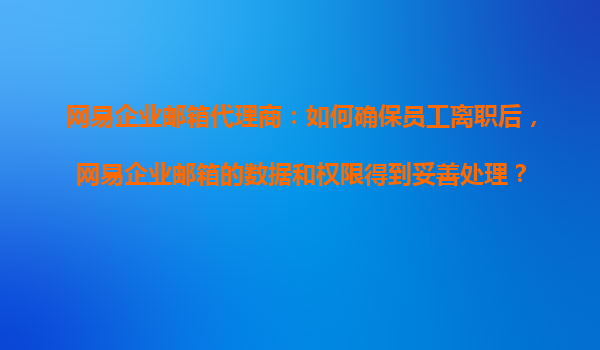 2025-11-02網易企業郵箱代理商:如何確保員工離職后,網易企業郵箱的數據和權限得到妥善處理? 一、員工離職對企業郵箱管理的挑戰 員工離職是企業運營中的常態,但若不妥善處理其企業郵箱賬戶,可...