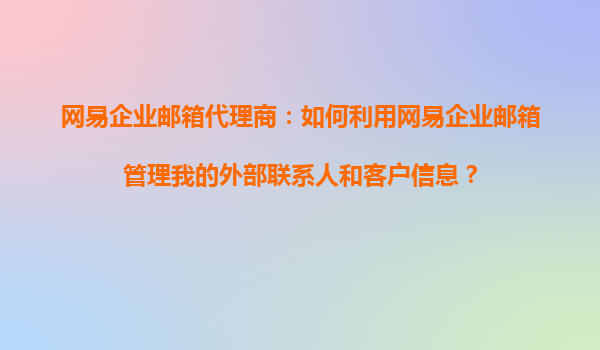 網易企業郵箱代理商:如何利用網易企業郵箱管理我的外部聯系人和客戶信息? 一、引言 在現代企業運營中,客戶關系管理(CRM)是提升業務效率和客戶滿意度的核心環節。而作為企業通信的重...